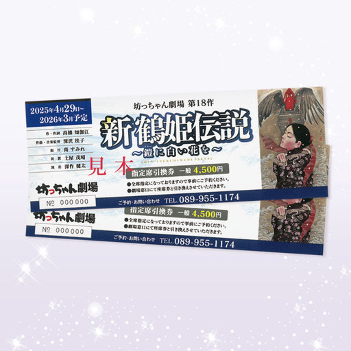 いしづち山麓マルシェ16万人が観劇し涙したミュージカル「鶴姫伝説」今の時代だからこそ届けたいあの感動を、新演出で再び! 坊っちゃん劇場で2026年3月まで公演予定の「新 鶴姫伝説~鎧に白い花を~」の観劇チケットです。 大切な方と一緒に観る舞台は、きっと特別なひとときに。 ご家族やご友人への贈り物にいかがですか?...